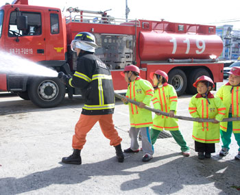 각종 안전장비의 사용법과 주의사항을 교육하는 데 사용되는 물품 제반